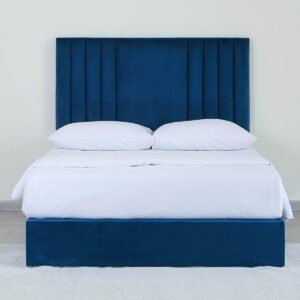 Karnak Superior Upholstered Velvet Bed Frame Bedroom Furniture Strong And Sturdy Modern Design Wooden Bed | Quiet & Comfortable Bed (HC – Wide Single 120x200cm, Blue)