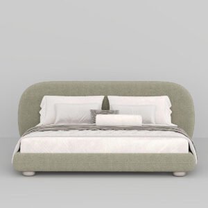 Karnak Collins Boucle Upholstery Bed – Queen (Mattress 160W x 200D) – Frame (215W x 240D x 98H), Greige