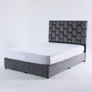Karnak Estorn Upholstered Velvet Bed Frame Bedroom Furniture Strong And Sturdy Modern Design Wooden Bed | Quiet & Comfortable Bed (King – 180x200cm, Grey)