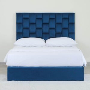 Karnak Estorn Upholstered Velvet Bed Frame Bedroom Furniture Strong And Sturdy Modern Design Wooden Bed | Quiet & Comfortable Bed (HC – Wide Single 120x200cm, Blue)
