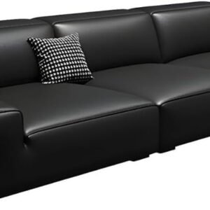 Karnak Extra Long Black Leather Sofa with Stain-Resistant Feature | Two Matching Pillows | Sponge & Latex Seat Filling | Full-Grain Leather Upholst