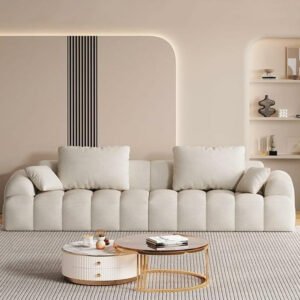 • Comfynest Light Luxury Sofa Set - Classic Wool Upholstered Chaise with Throw Pillow, Off-White, Space-Saving Couch for Living Room and Bedroom, No Assembly Required (Pumpkin Design, Double Seater) Comfynest Light Luxury Sofa Set - Classic Wool Upholstered Chaise with Throw Pillow, Off-White, Space-Saving Couch for Living Room and Bedroom, No Assembly Required (Pumpkin Design, Double Seater)