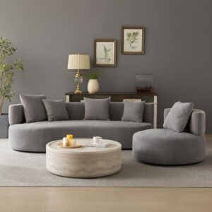 Karnak Modern Rotatable Curved Sectional Sofa – 360° Swivel Upholstered 4-Seater Couch Set, Right Hand Facing Lounge Sofa for Living Room, Bedroom, or Apartment (Grey)