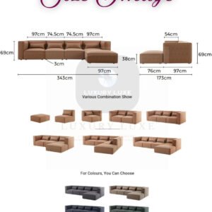 Luxury Luxe Modular Sofa Set – Configurable 1/2/3/4-Seater, Plush Fleece Fabric, Solid Wood Frame, No Assembly – Modern Living Room Sectional (Three Seater: 253cm (in Two Parts))