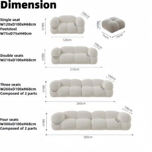 Luxury Luxe Cloud-Shaped Sofa Set for Living Room – Modern Eco-Friendly Fabric, Ergonomic Comfort & Durable Solid Wood Frame for Living Room, Single/Double/3-Seater (Single Seater: 78H x 88D x 80W cm)