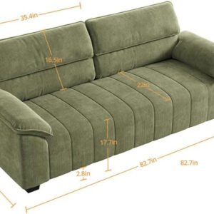 Luxury Luxe Comfy 3-Seater Sofa Couch with Deep Seats – Modern Corduroy Sofa for Living Room, Apartment & Lounge | Stain-Resistant, Scratch-Resistant, Removable Covers | Green, Grey & Beige (Green)