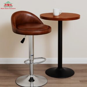 Multi Home Furniture Brown & Silver Bar Stool Chair with Steel Base | Adjustable Height Bar Chair | Faux Leather Bar Stool Chair for Kitchen Island, Bar, Counter, Restaurant, Tall Stool & Swivel Chair
