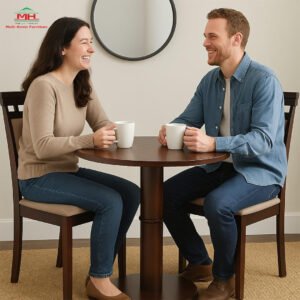 Multi Home Furniture Brown Wooden Dining Chair Set of 2 with Padded Seat & Backrest – Dining Chairs, Beige Upholstery – Elegant Accent Chairs for Dining Table, Café, Restaurant, Living Room Furniture