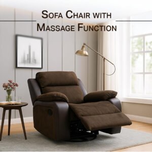 Multi Home Furniture Brown Recliner Sofa Chair with Massage Chair Function, 360° Swivel Chair, Recliner Chair with Soft Cushion & Lazy Chair PU Leather Sofa-Fabric Blend for Living Room, Home & Office