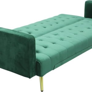 Modern Design MH-1048SB-GREEN SOFA CUM BED OR 3 Seater Sofa Soft PU Velvet 3-Seater Sofa,Made of finiest VELVET sofa AND Golden legs cum bed is Foldable Futon Bed for Living Room –(GREEN)