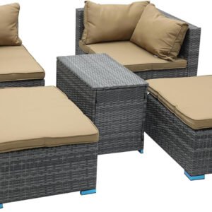 Multi Home Furniture Garden Lounge Set 5 Piece with Cushions Outdoor MH-LGHW5018 Patio Sofa Balcony Set Coffee Table Yard Lounge Bench Poly Rattan Grey & Cushion Golden