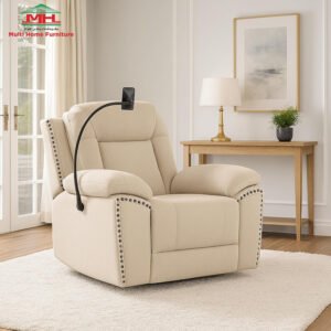 Multi Home Furniture Cream Recliner Chair and Sofa Chair with Electric Massage Function, Wireless Charging, USB Port & Mobile Holder – Lazy Leather Sofa for Living Room, Single Sofa Armchair