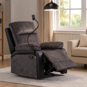 Multi Home Furniture Dark Grey & Black Recliner Chair for Living Room – Lazy Sofa Chair with 360° Swivel, Rocking Motion, Mobile Holder, Soft Cushions, PU Leather Sofa Fabric Recliner Sofa Single Sofa