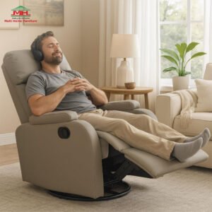 Multi Home Furniture Grey Recliner Chair for Living Room – Modern Lazy Sofa Chair with 360° Swivel, Rocking Motion, PU Leather Fabric Single Sofa Recliner, Armchair Lounge Chair Sofa for Home & Office