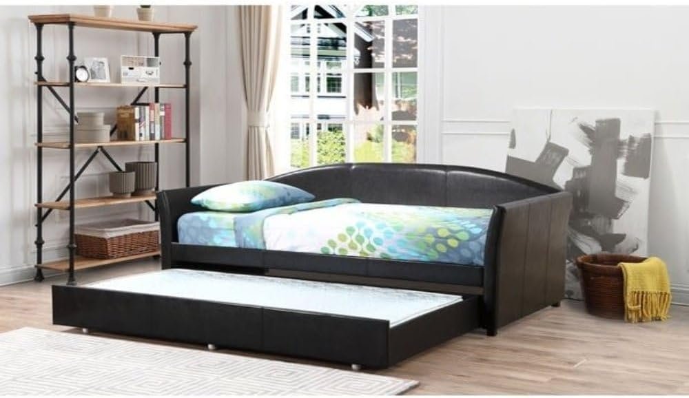 Adriana Faux Leather Daybed with Trundle – Versatile Upholstered Daybed, Perfect for Lounging or Guest Rooms