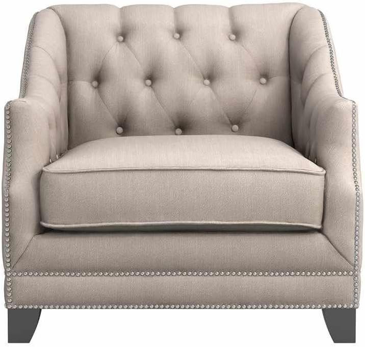 Beige polyester Button Tufted Arm Chair – Stylish Upholstered Accent Chair, Custom Design for Living Room or Office