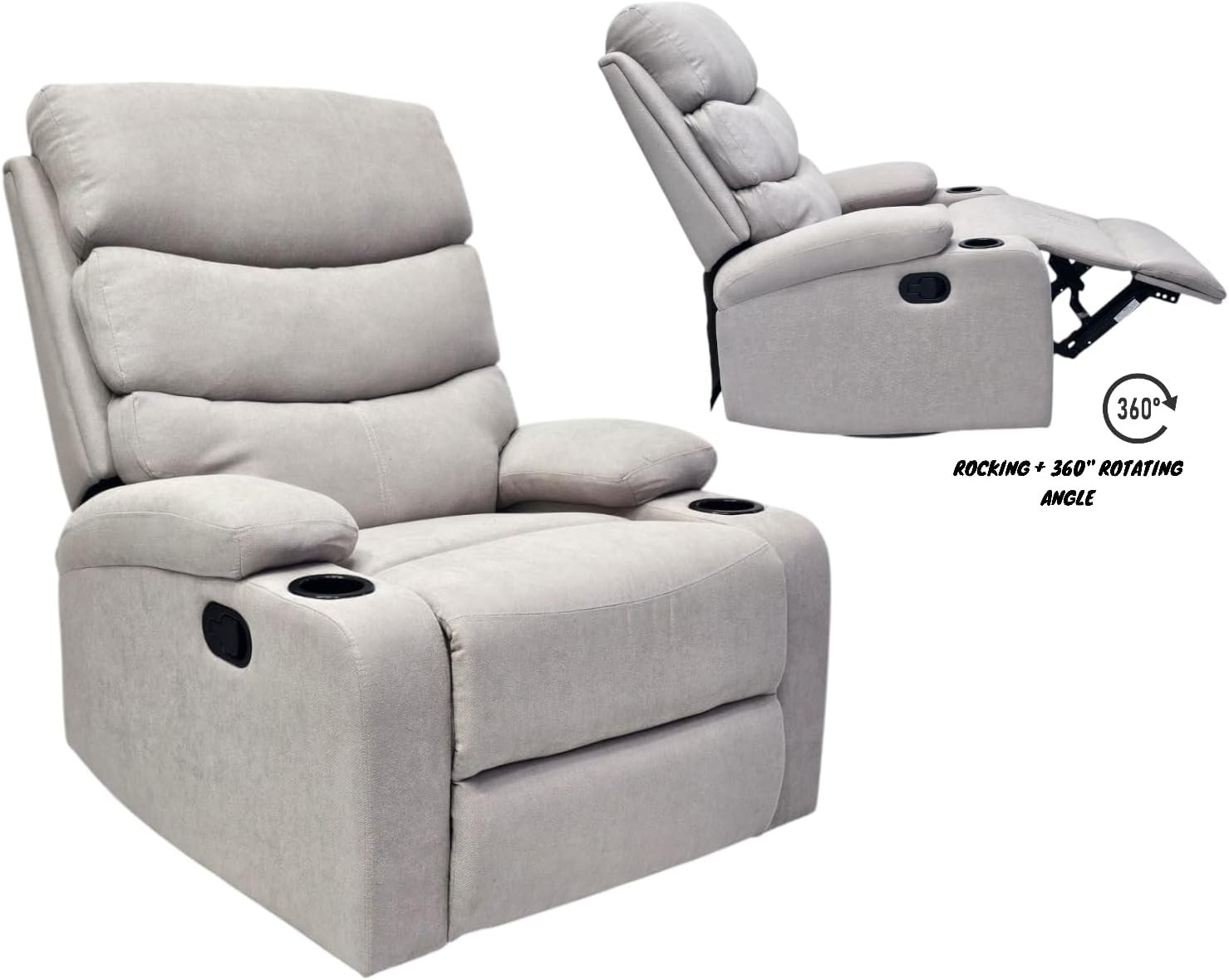Best Single Recliner 360 Sofa MH-03849 FABRIC Modern Rocker Ergonomic Lounge 360 Degree Swivel With cup-holderSingle Sofa Seat Living Room Chair (grey)