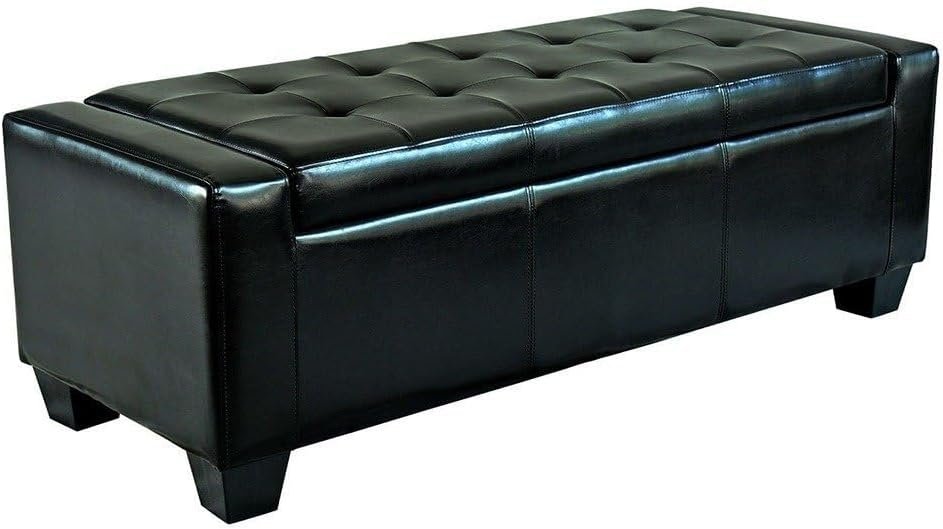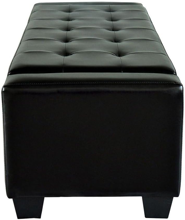 Black Faux Leather Ottoman Bench – Upholstered Ottoman or Bench, Multi-Purpose Seating for Living Room or Bedroom