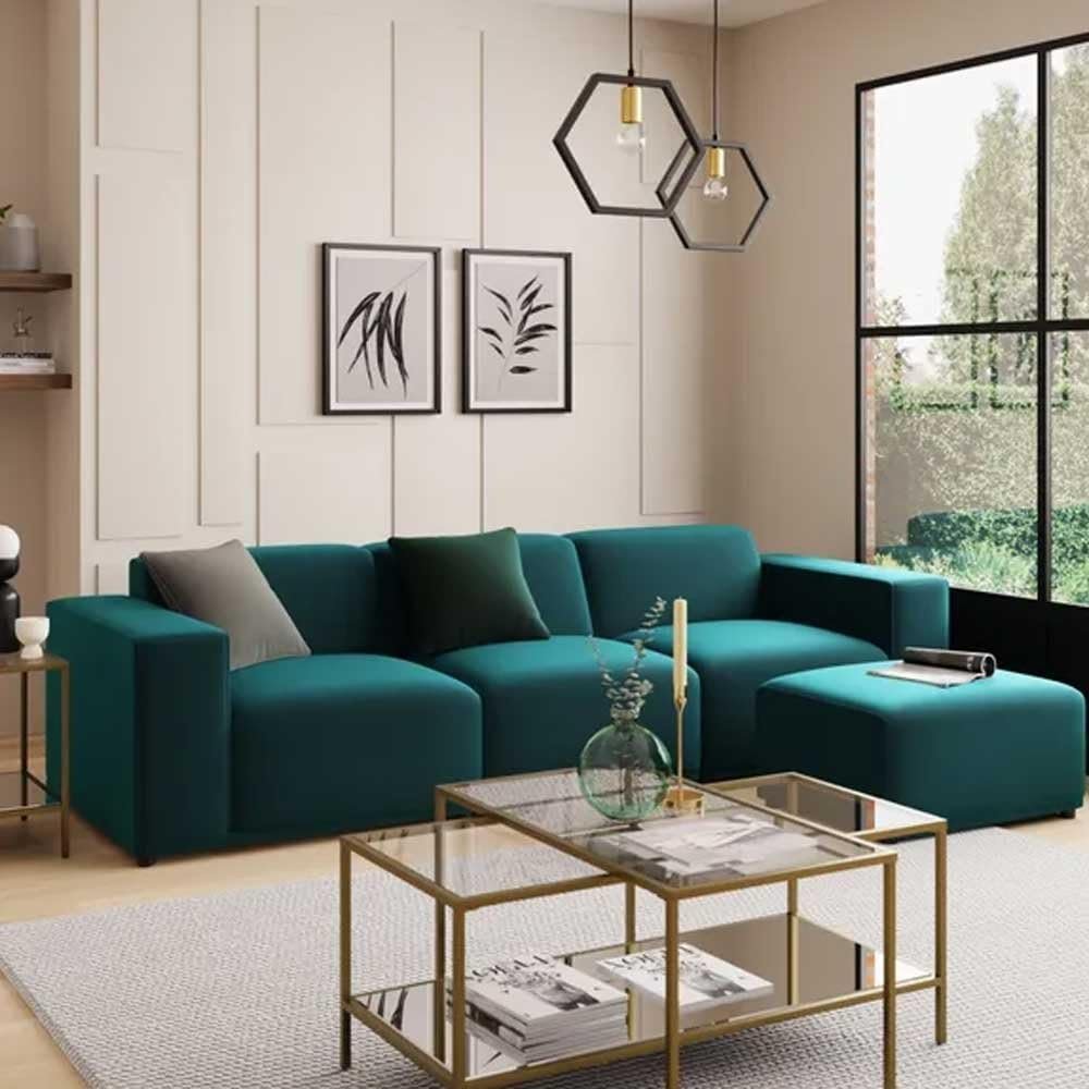 Carlos Blue Velvet Modular Sofa – Customizable Sectional Sofa for Living Room, Premium Upholstery, L-Shape Design