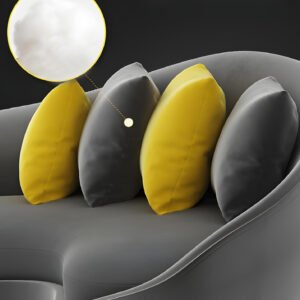 Introducing the Comfynest Contemporary Velvet Solid Color Curved Slope Arm Sofa in sophisticated Grey. This masterpiece of modern design seamlessly blends comfort and style, transforming your living room into a haven of luxury.