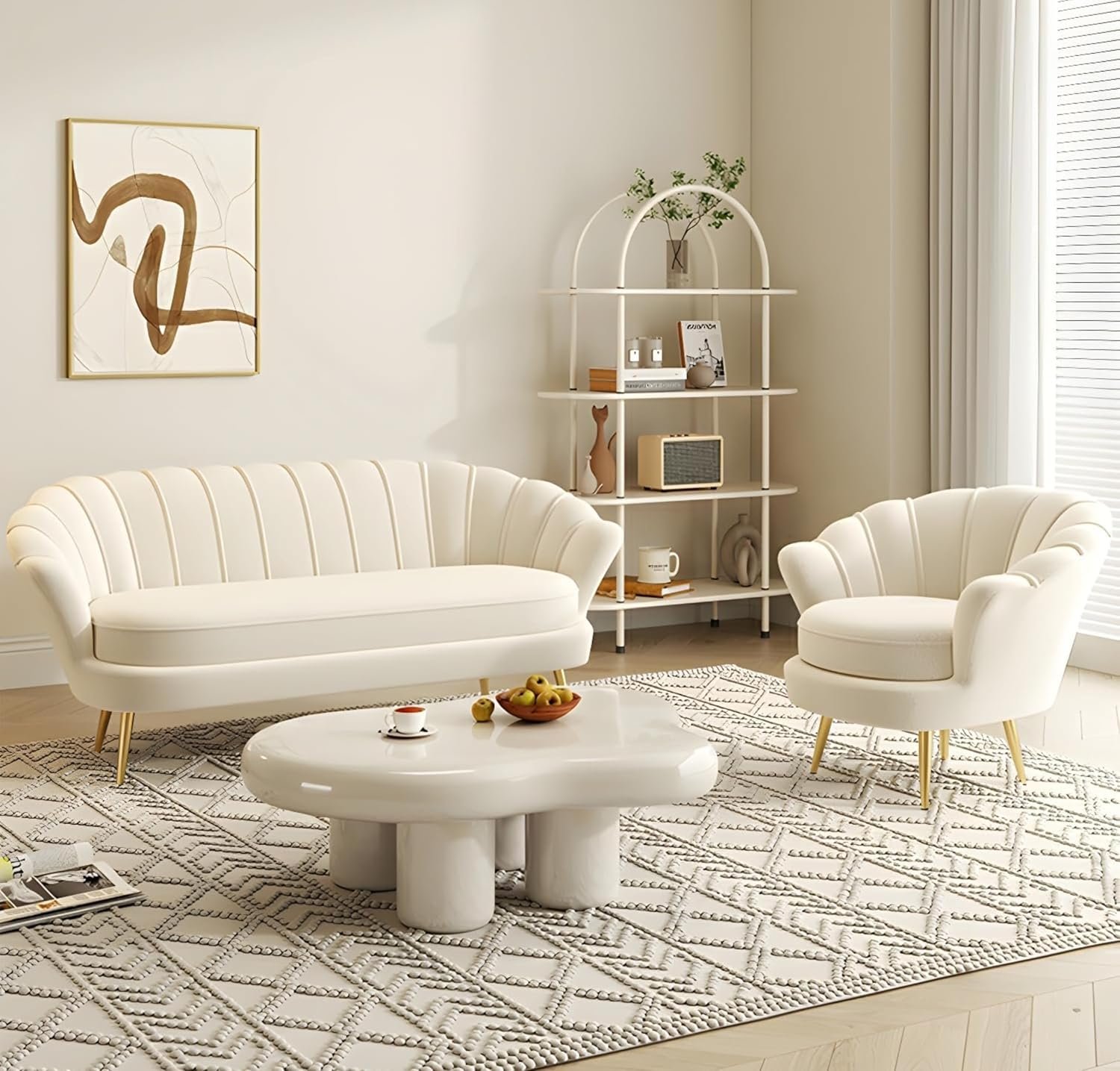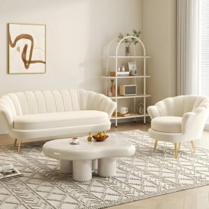 Elevate your living room with the Comfynest Glam Sherpa Standard Sofa! With a sleek, off-white design, this sofa combines luxury and comfort. Crafted with plush sherpa fabric, sloped arms, and foam cushions, it offers a chic and cozy seating option. Available in multiple colors to match your style, this sofa’s solid construction promises durability and lasting comfort. Perfect for any modern living space, the Comfynest Glam Sherpa Sofa adds a touch of elegance and warmth to your home decor.
