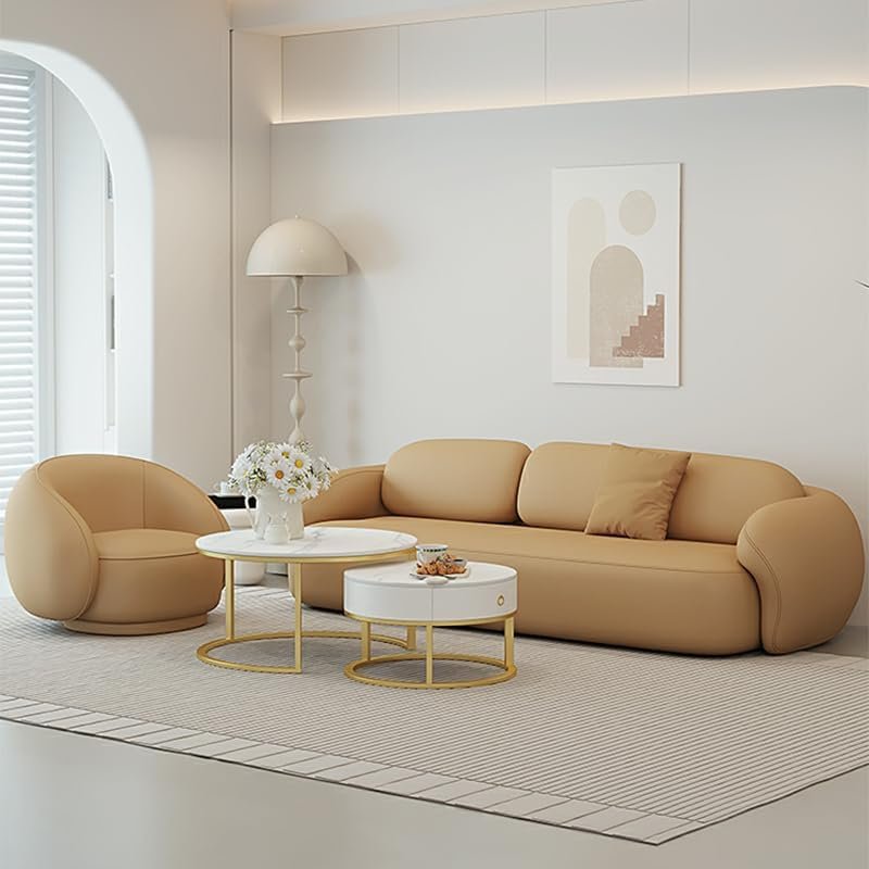 Comfynest Leathaire Orange Modern Sofa with Stain Resistant Fabric in Solid Color Design, 160.02×83.82×68.58 cm
