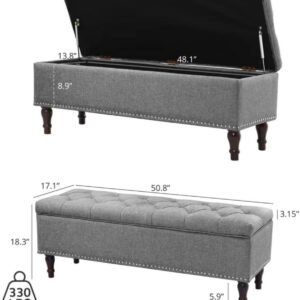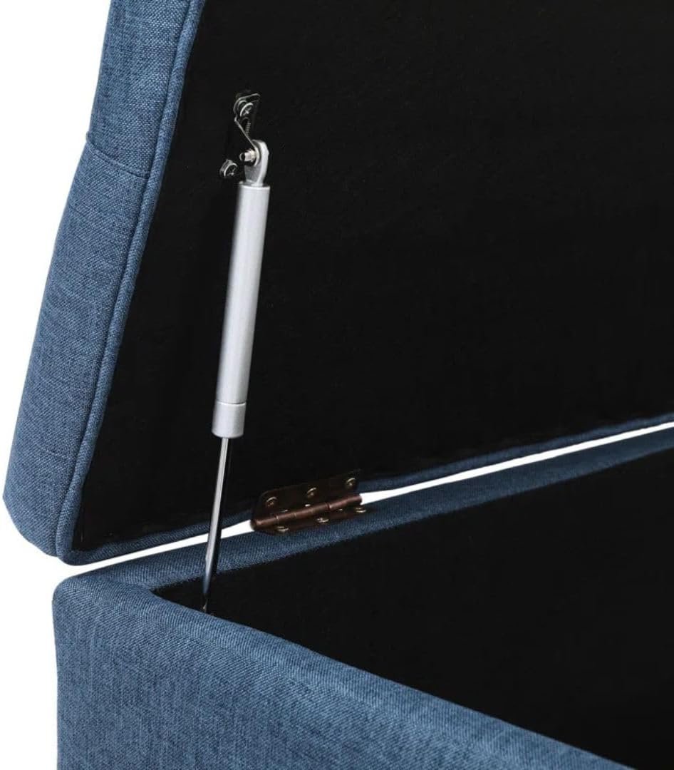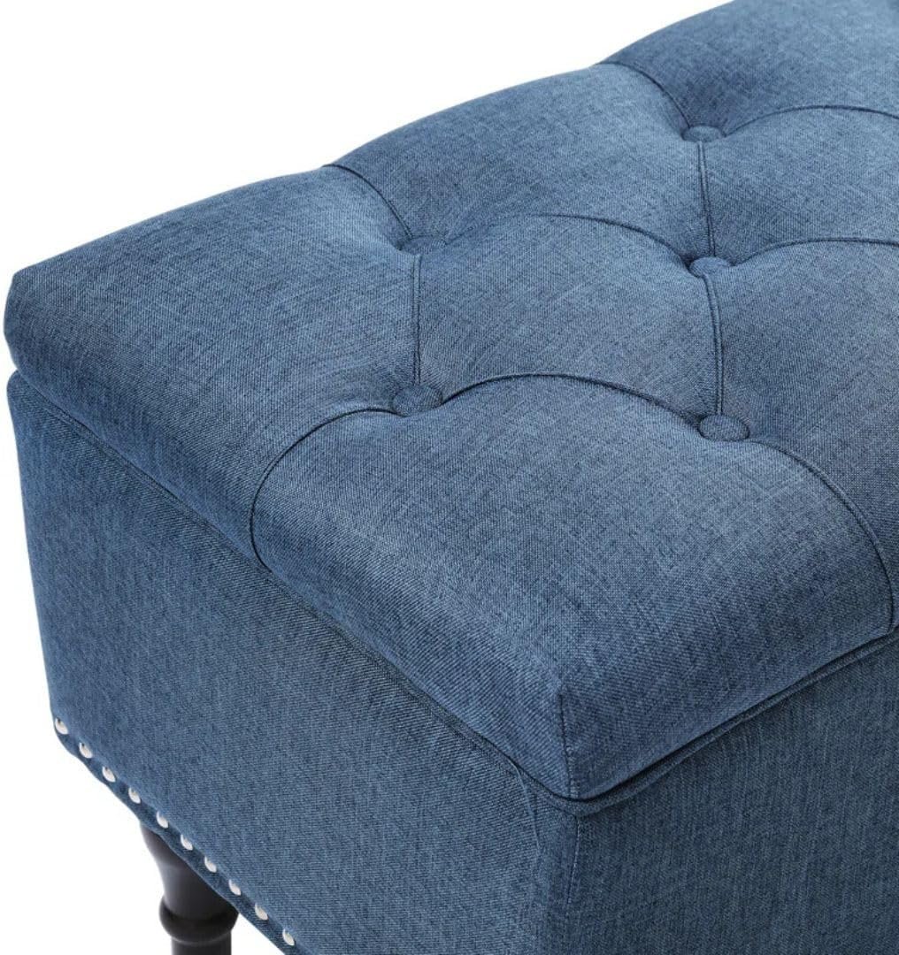 Comfynest Modern 50.8″ Storage Bench – Button-Tufted Flip-Top Seat with Nailhead Trim & Turned Wood Legs (Navy)