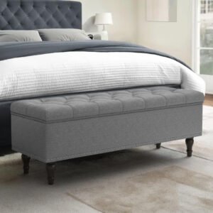 Add charm and function to your space with this elegant storage bench. Featuring a tufted seat, spacious hidden storage, and a timeless silhouette, it’s perfect for entryways, bedrooms, or living rooms.