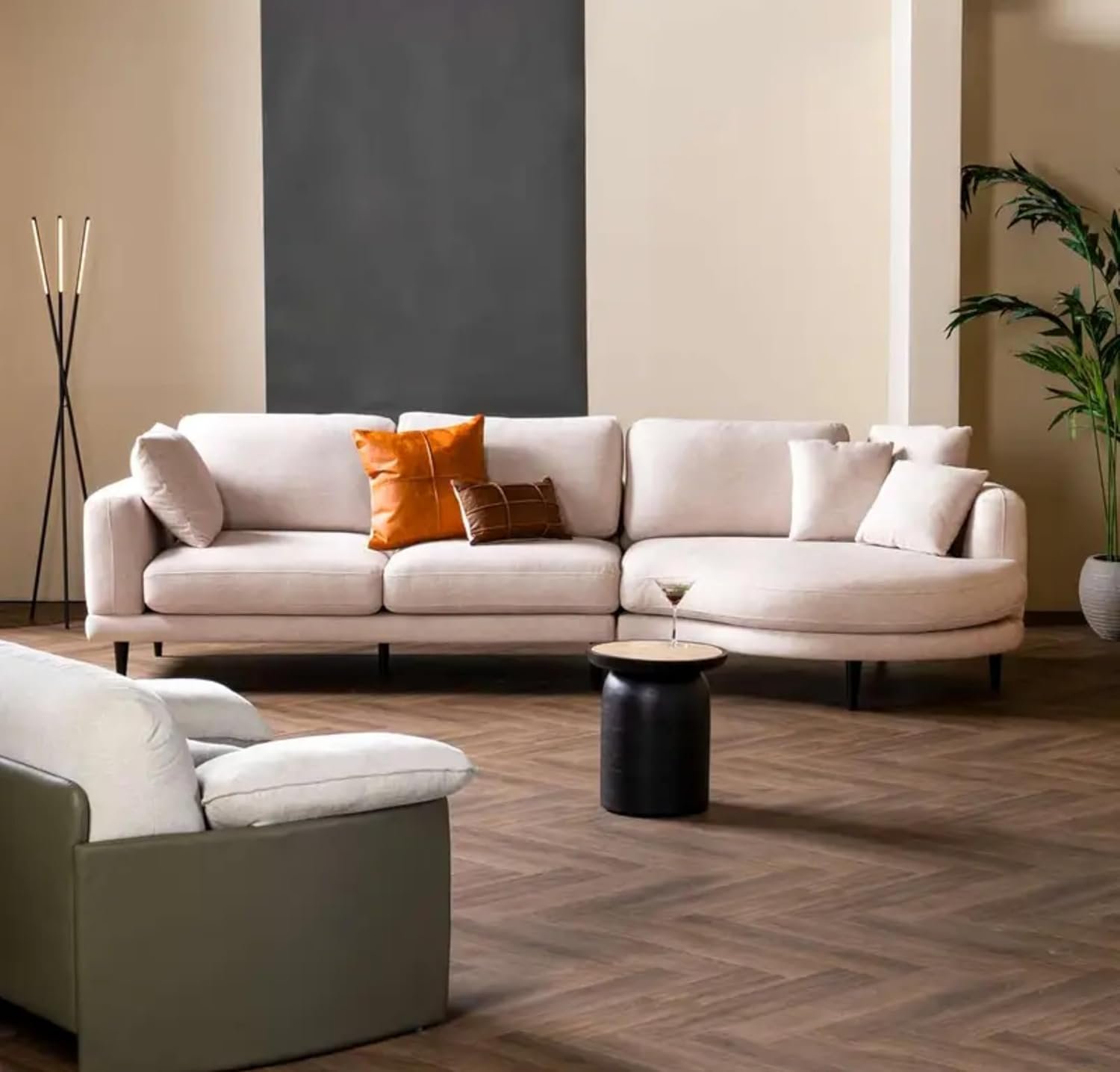 Comfynest Right Chaise Sofa, Ivory – Modern, Comfortable, and Spacious Sofa for Living Room