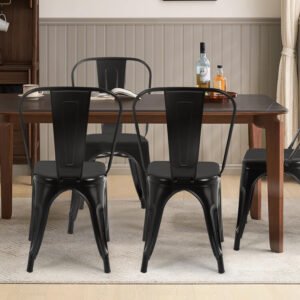 FDW Metal Dining Chairs Set Of 4 Indoor Outdoor Chairs Patio Chairs Kitchen Metal Chairs 18 Inch Seat Height Restaurant Chair Metal Stackable Chair Tolix Side Bar Chairs No Installation Required