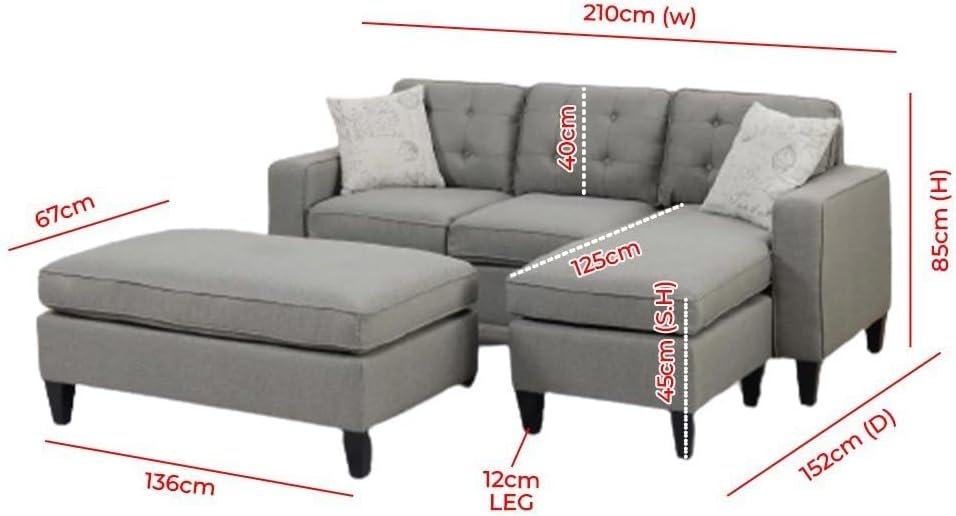 Howa Wide Sectional L-Shape Sofa with Ottoman – Customizable Sectional Sofa for Living Room, Premium Upholstery, L-Shape Design