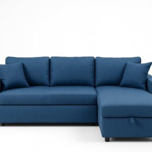 Hunter 3-Seater L-Shaped Sofa Cum Bed with Storage | Convertible Fabric Corner Couch for Living Room Furniture | Cushion Back | Track Arms & Metal Frame | Blue