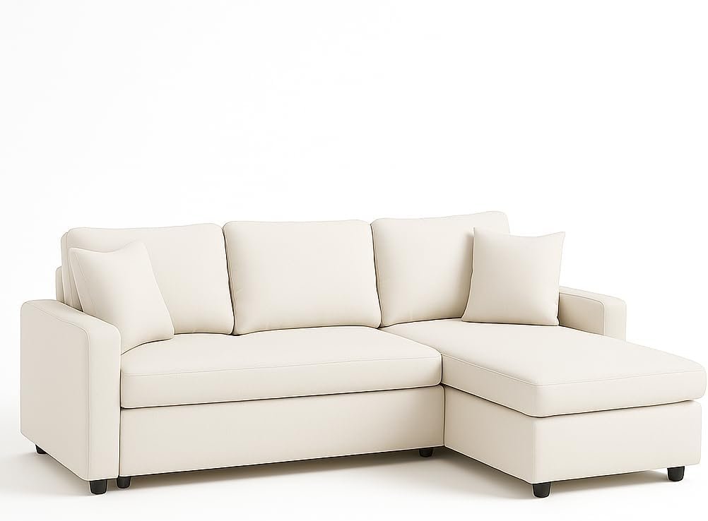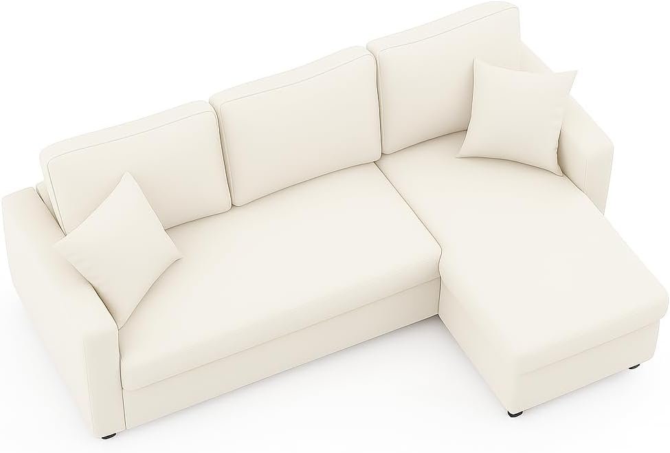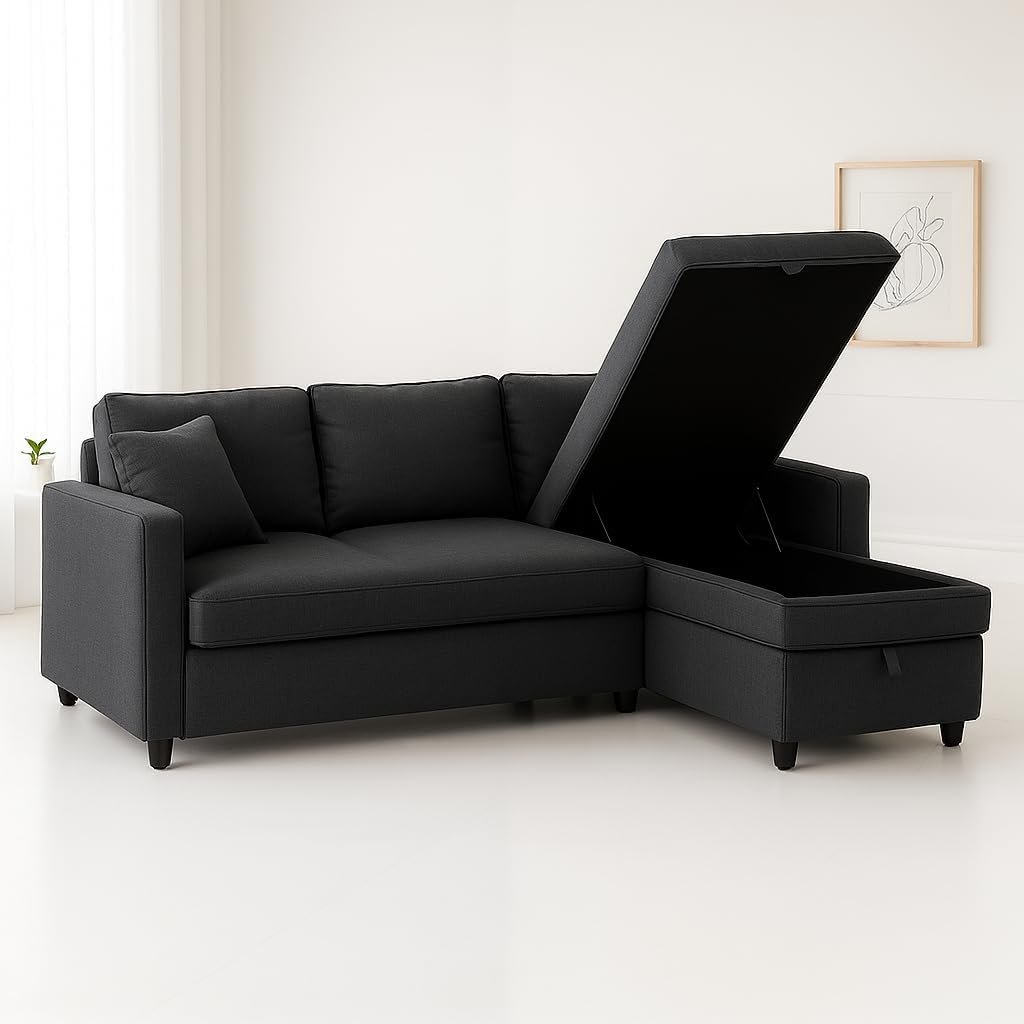 - Space-Saving L-Shaped Design Designed to fit snugly into any corner, this sofa cum bed maximizes your living room space without sacrificing comfort or style.