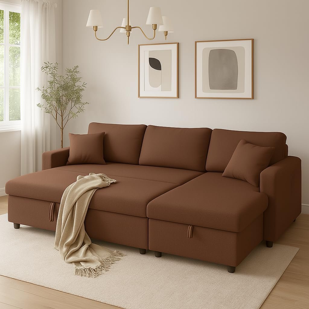 - Space-Saving L-Shaped Design Designed to fit snugly into any corner, this sofa cum bed maximizes your living room space without sacrificing comfort or style.