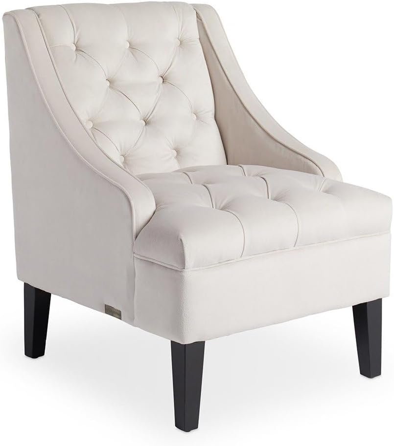 Ivory Velvet Tufted Accent Chair – Stylish Upholstered Accent Chair, Custom Design for Living Room or Office