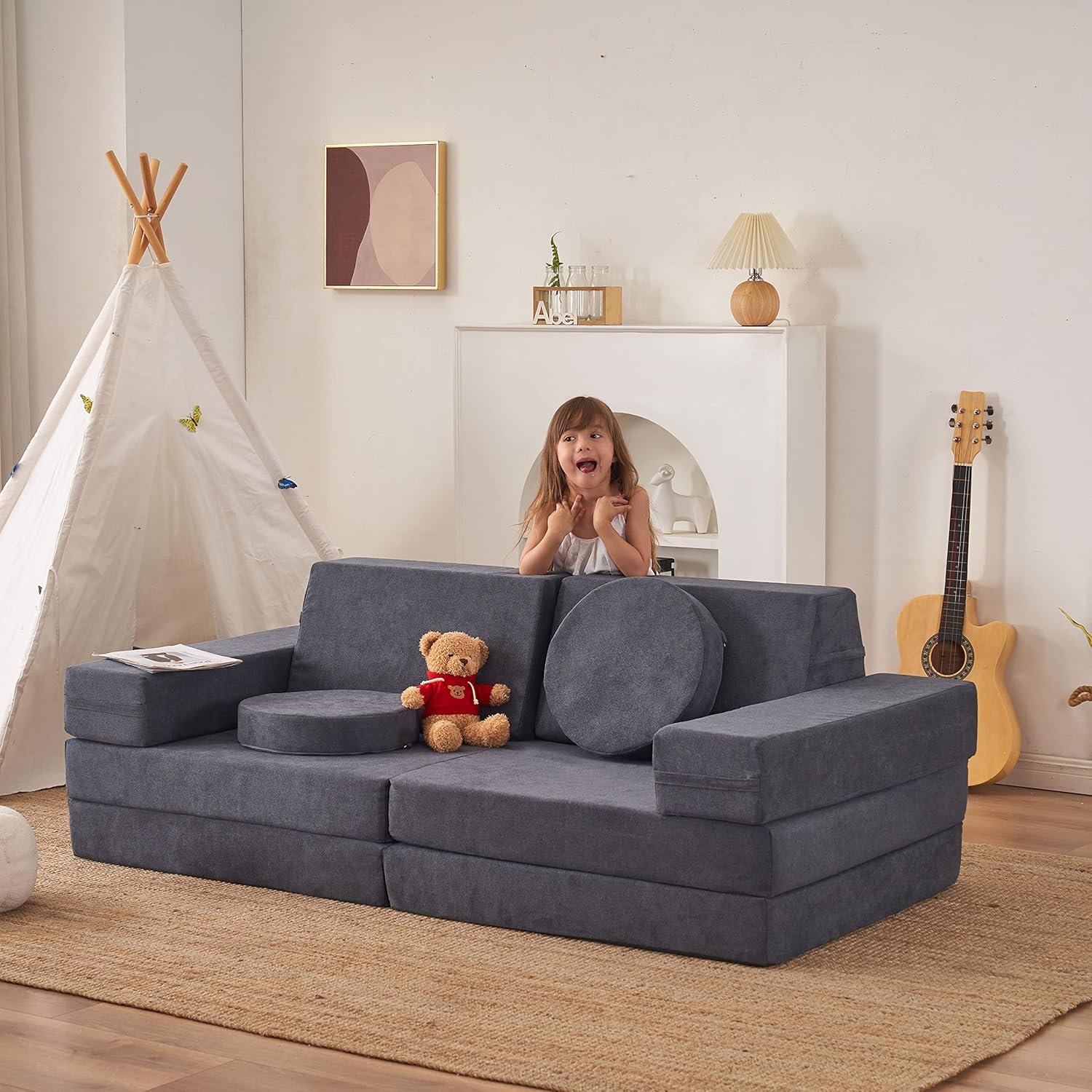 The best piece of furniture in our playroom. Great for making forts, playing cards/board games, slides, ramps and endless fun. My 5 and 7yo boys (and two small dogs) love this couch!