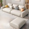 Karnak 3 Seater Diwan Sofa Bed With Cushions L-Shaped Storage Space | Convertible Living Room Furniture Beige 210X160X95 Cm
