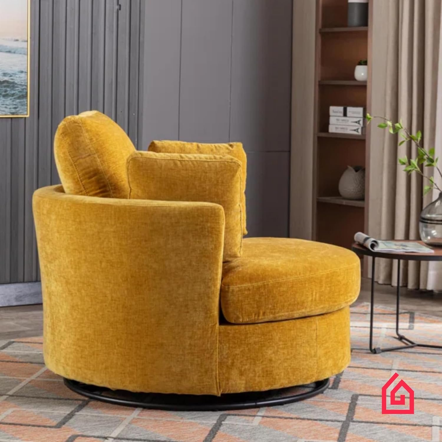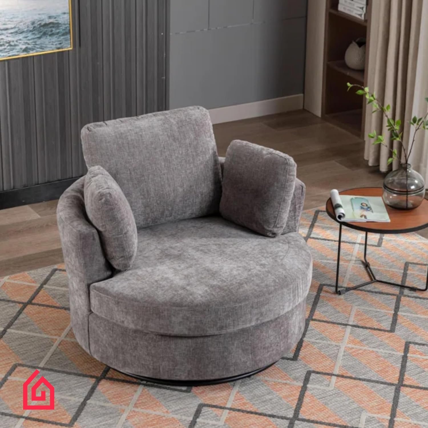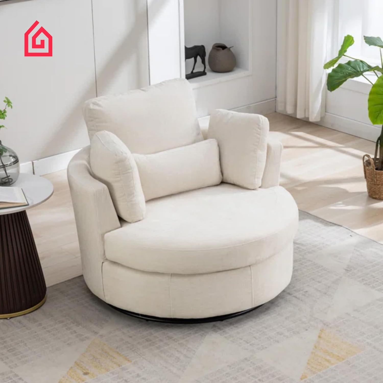 • CUSTOMIZE TO YOUR STYLE – Love the oversized swivel chair but want a different look? This accent chair can be tailored in your preferred color to match your décor. Plus, it comes with 4 stylish pillows in assorted shades that complement the design beautifully. Just reach out to personalize your order and make this chair the perfect fit for your home.