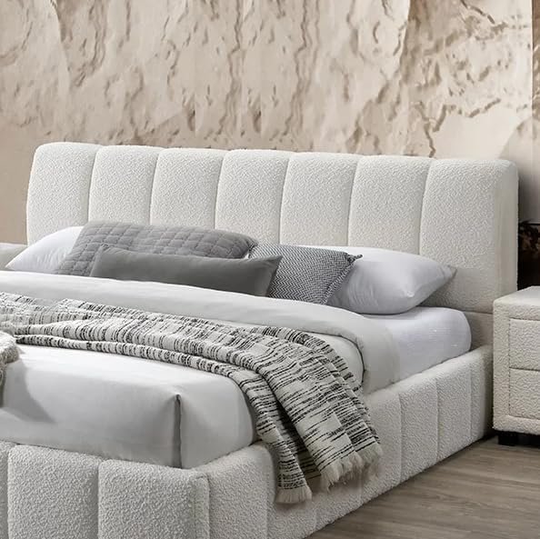 Karnak Akhi Boucle Upholstered Bed Luxury Modern Bed Frame for Bedroom – Twin: 120 x 200cm