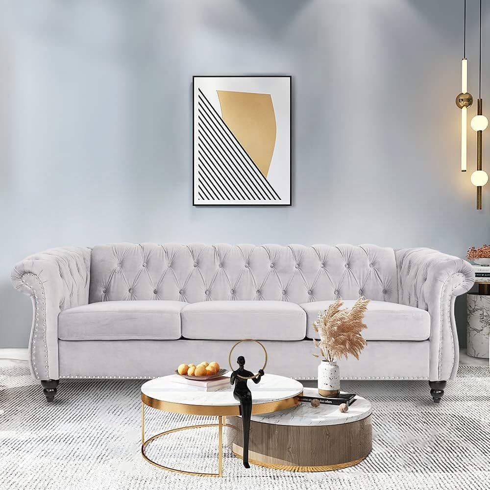 - Updated design of the classic kidney-shaped sofa Diamond tufting fits a traditional or contemporary setting Features back and bottom quilting with a tight seat Sturdy wooden frame with plush polyester and cotton mix upholstery