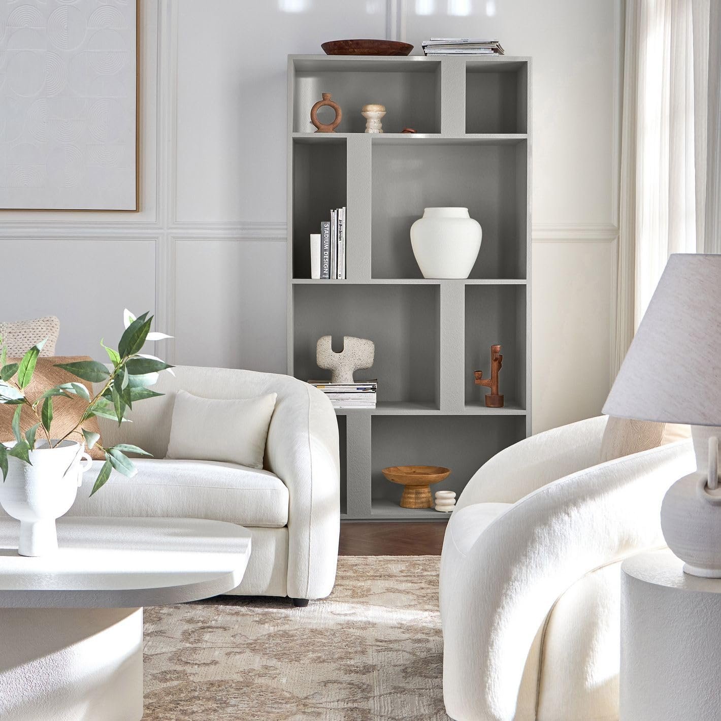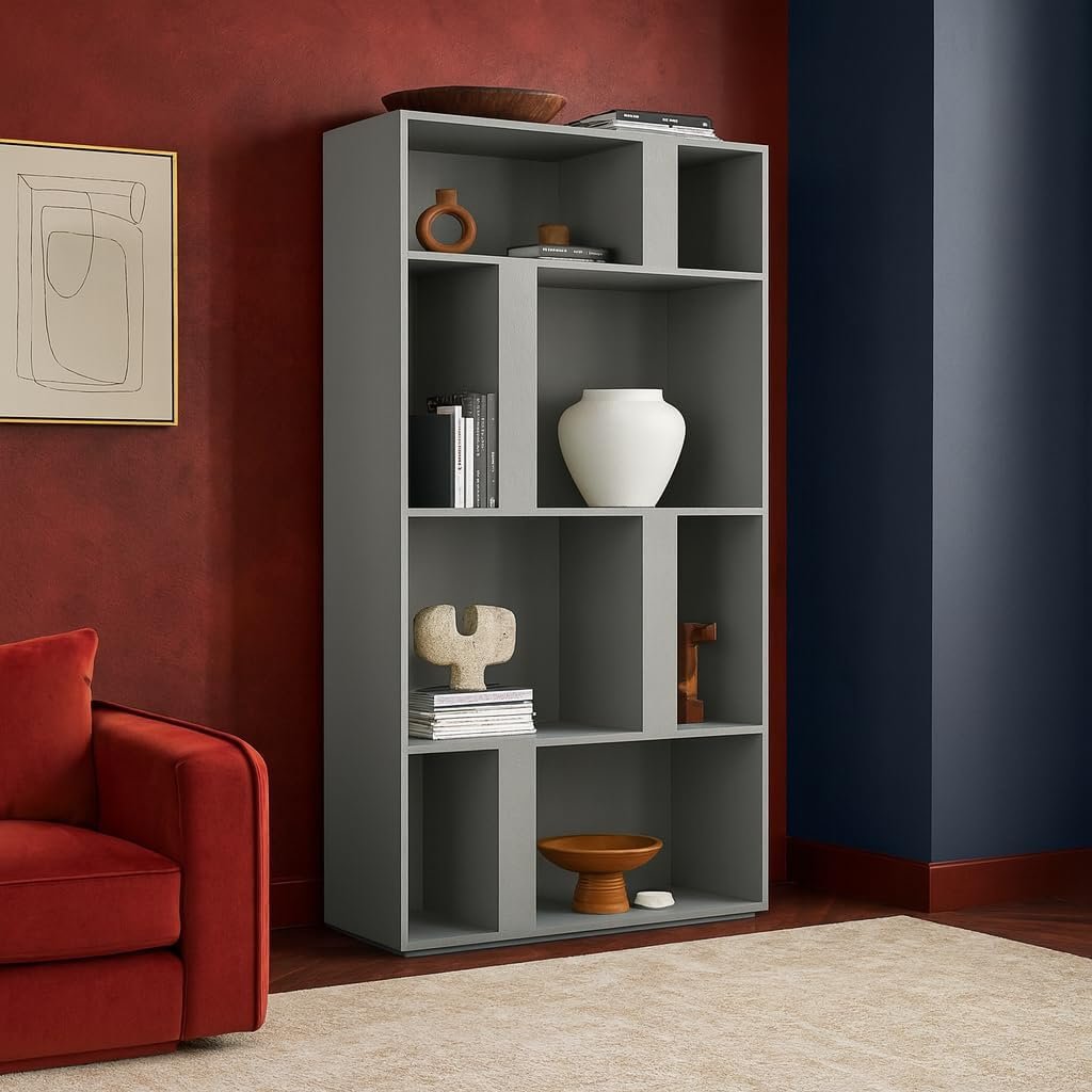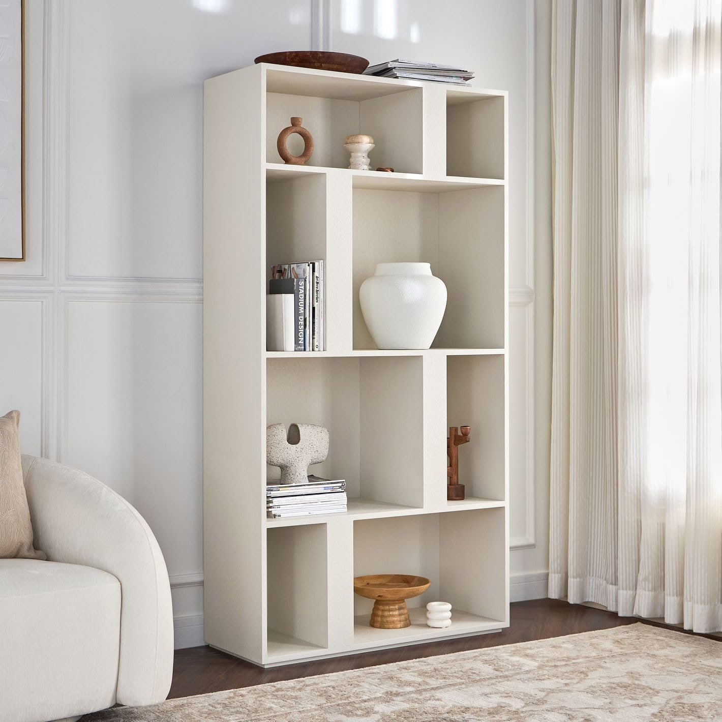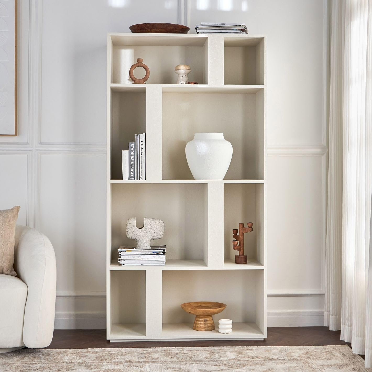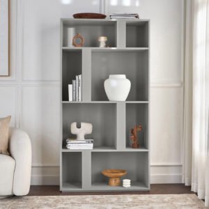 Karnak Balance Display Unit – Modern Engineered Wood Shelf Cabinet with Unique Compartments & 4 Shelves, (White)