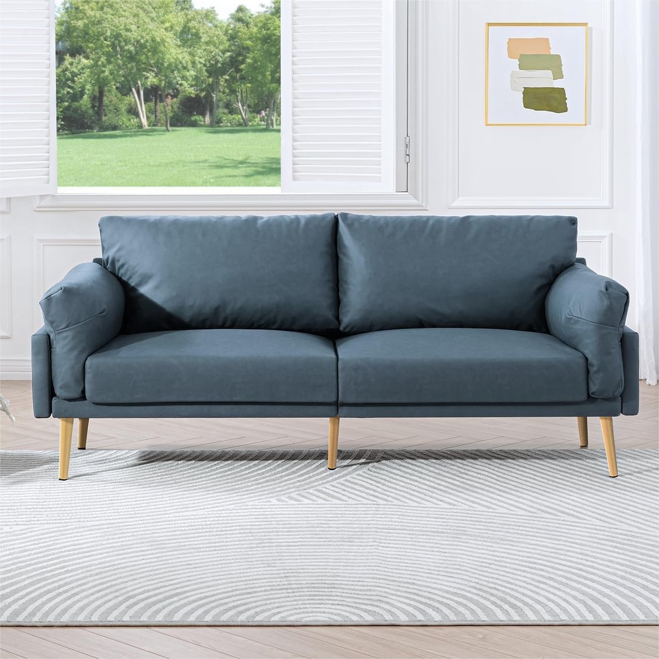 Karnak Brooklyn Leather 2-Seater Sofa Couch Set Modern Design Design Sofa Couch For Living Room Color (Blue)