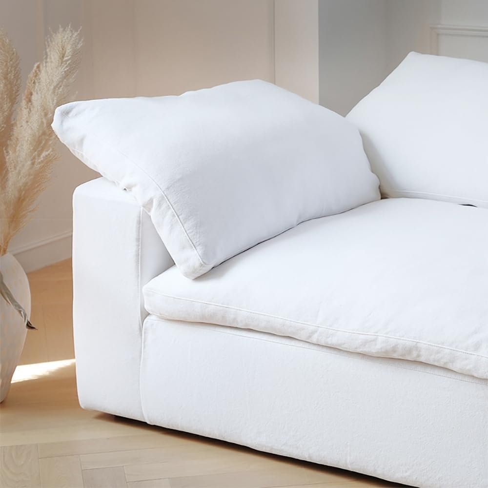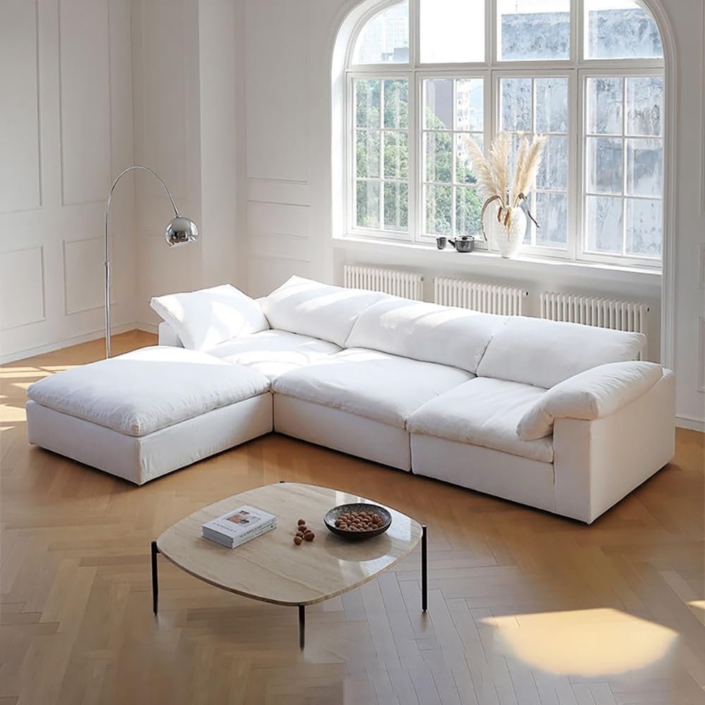 Karnak Cloud Sofa Couch 3-Seater Polyester Fabric Upholstery Sofa Couch (WHITE, 3 SEATER + OTTOMAN) for Living Room Furniture