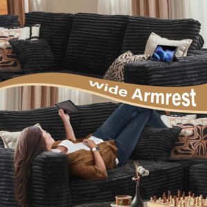 Karnak Cloudelle-Style 6‑Piece Sectional Sofa – Plush Corduroy U‑Shape with Ottoman & Toss Pillows | Modern Modular Sofa With Deep Seat (Black) | Mod