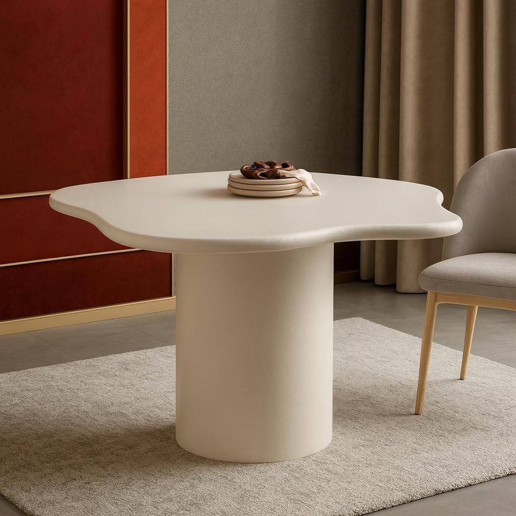 Elevate your dining room with the Karnak Cloudy 4-seater dining table, a modern masterpiece of design and functionality. Its unique wave-shaped top brings a bold aesthetic, while the pedestal base ensures stability and balance. Crafted from durable MDF with a textured plaster finish, this table is both stylish and easy to maintain. Compact yet eye-catching, it’s ideal for apartments and villas in Dubai, Abu Dhabi, and Sharjah—perfect for family dinners or entertaining guests. Dining chairs sold separately.