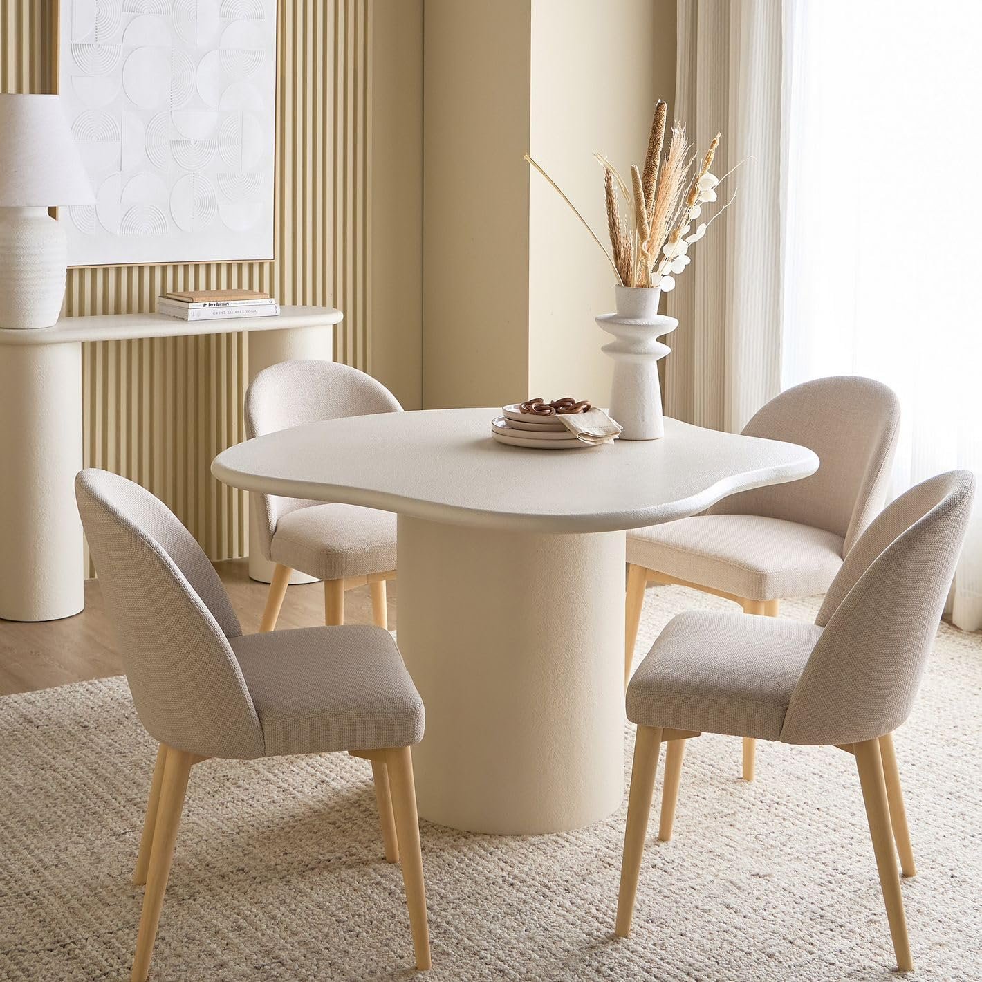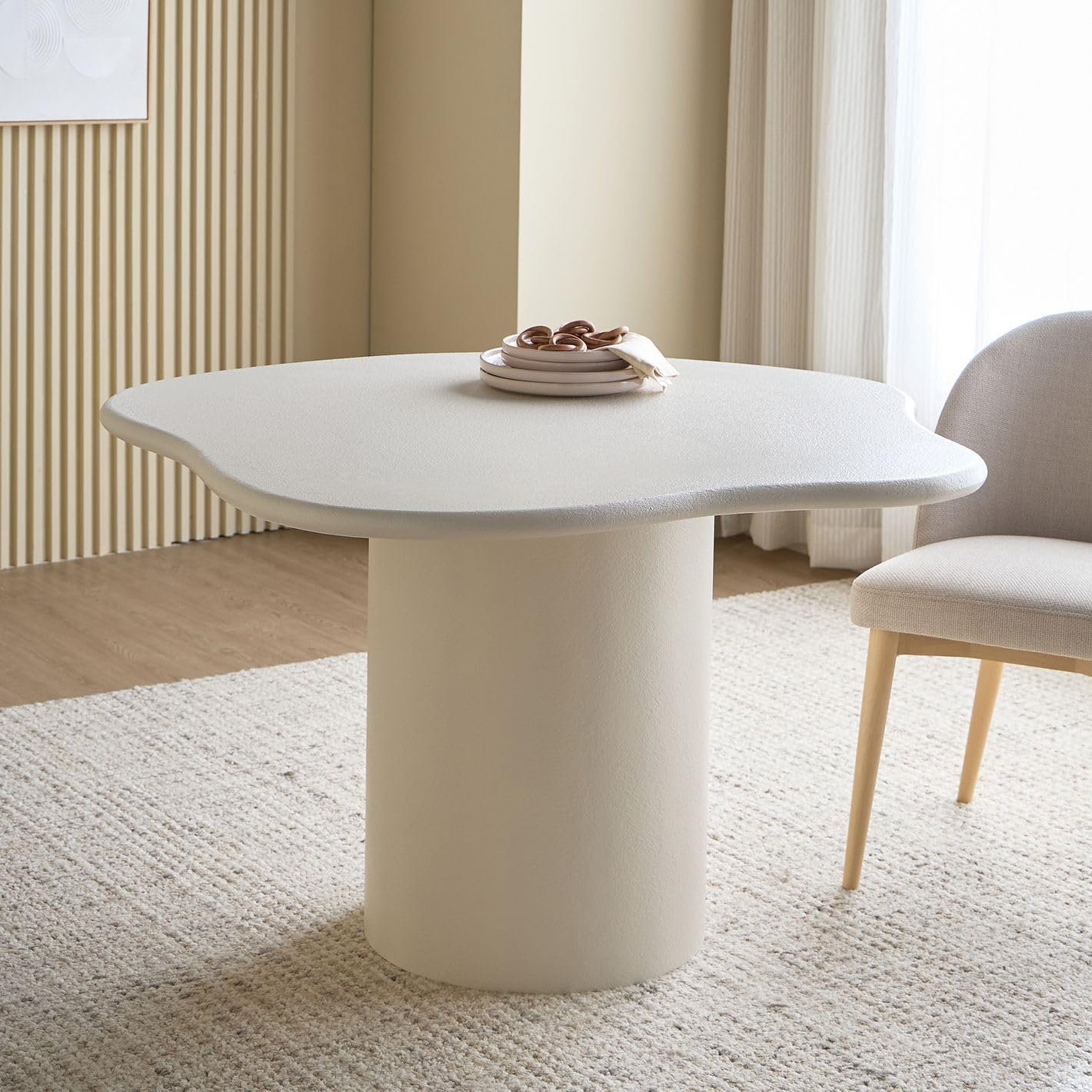 Karnak Cloudy 4-Seater Dining Table with Wave-Inspired MDF Top, Pedestal Base, Textured Plaster Finish (White)