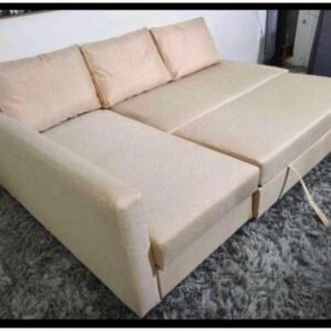 Karnak Convertible Sofa Cum Bed L-Shape Corner Sofa Plus Diwan Bed with Storage Box & Cushion for Living Room, Home, Office, Apartment, Studio Room Size 215x150x75 Centimeters KSB206