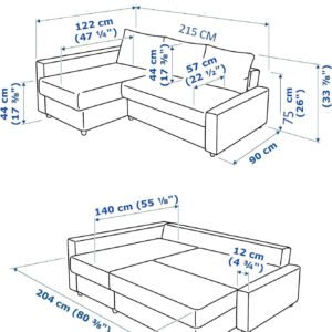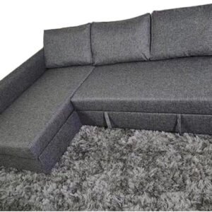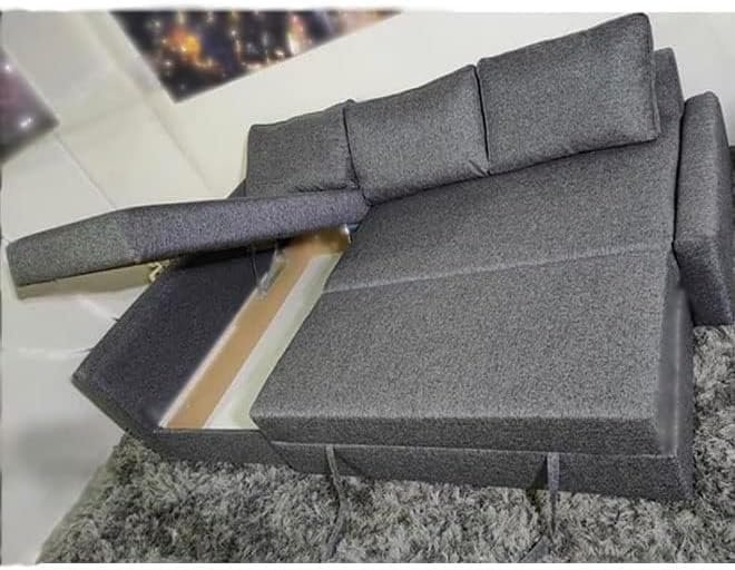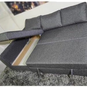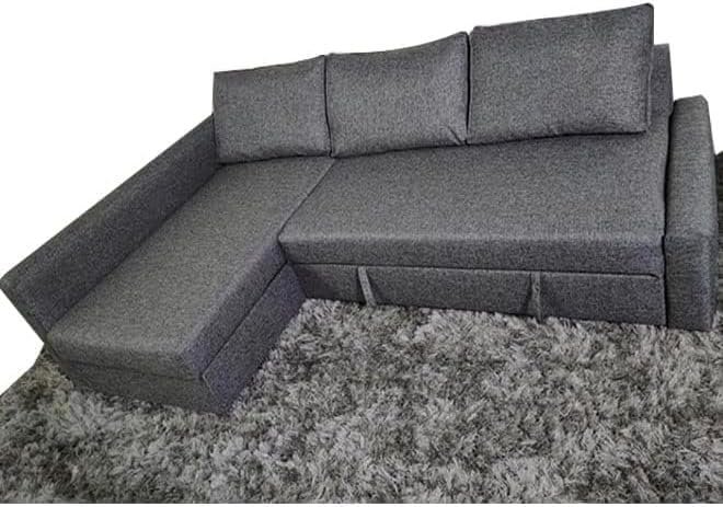Karnak Convertible Sofa Cum Bed L-Shape Corner Sofa Plus Diwan Bed with Storage Box & Cushion for Living Room, Home, Office, Apartment, Studio Room Size 215x150x75 Centimeters KSB225