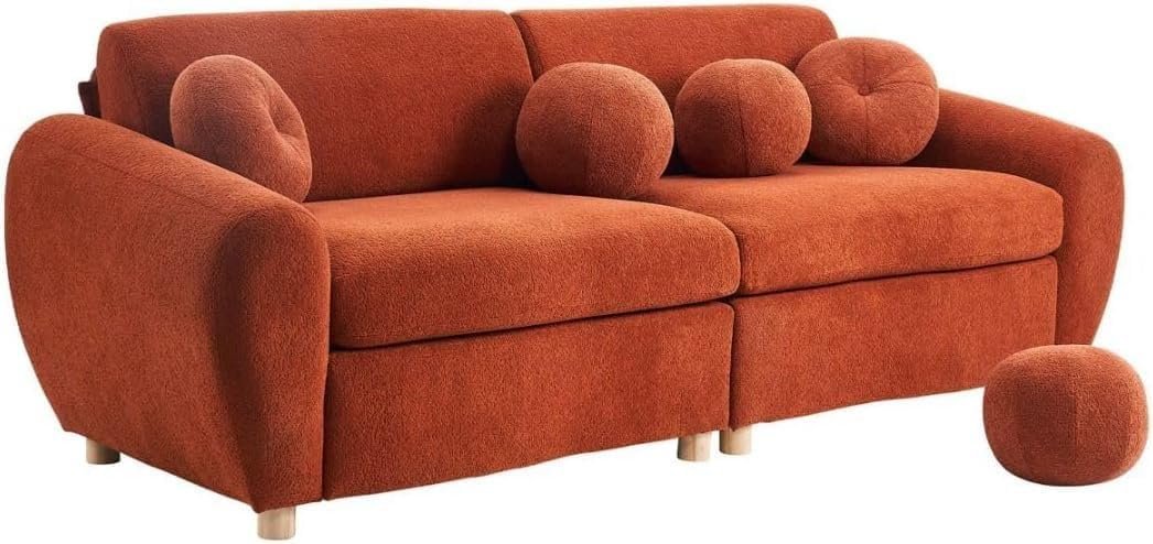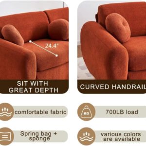 Be the first to review “Karnak Curved Velvet Sofa – 84″ Chenille Upholstered Scalloped Couch with Pillows | Modern Living Room Furniture (Orange Chenille) | Modern Sofa” Cancel reply