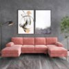 • Material: Fabric Secondary Material: Hardwood Frame Detail: Handmade Filling: Foam Leg Material: Solid Wood Warranty: 1 Year Designed: To offer a maximum comfort and durability Care Instruction: Clean with a duster or vacuum lightly using the soft brush attachment.